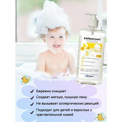 Бэйбисофт - детское жидкое мыло во флаконе с дозатором. (pH – 5,0 – 6,0 ед.) предназначено: