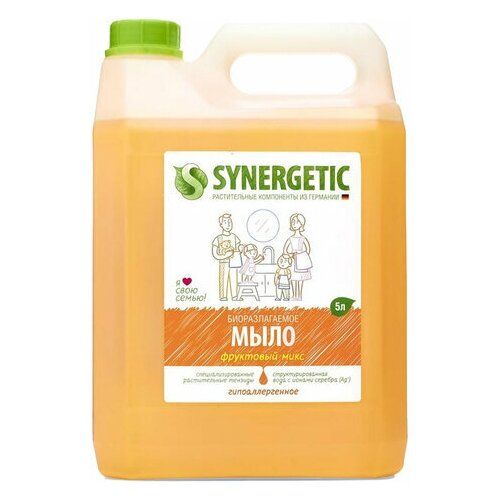 НАЙТИ ВЫГОДНЕЕ - Мыло жидкое 5л SYNERGETIC Фруктовый микс, комплект 4 шт гипоаллергенное, биоразлагаемое, ш/к 5843, 105502