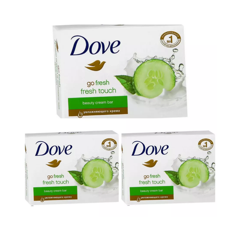 Dove мыло набор из 3 шт по 135гр. Кремовое мыло сочетает в себе питательные свойства огурца и зеленого чая. Мыло Дав бережно очищает и увлажняет кожу, придавая ей нежность и гладкость. Кремовая текстура мыла Dove позволяет создать богатую пену, которая деликатно очищает кожу, не пересушивая ее. Твёрдое мыло Dove по 135гр. обогащено экстрактом огурца и зеленого чая. Дизайн упаковки может отличаться.