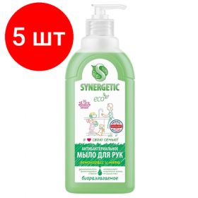 Внимание[Мыло жидкое Synergetic антибактериальное, Лемонграсс и мята 500мл дозатор] X 5 шт.