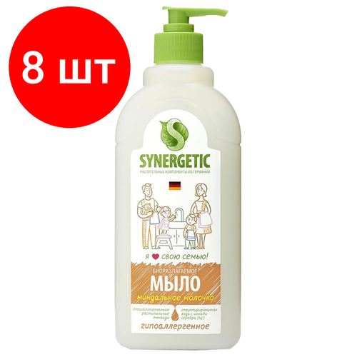 НАЙТИ ВЫГОДНЕЕ - Комплект 8 шт, Мыло жидкое 500мл SYNERGETIC Миндальное молочко, гипоаллергенное, биоразлагаемое, доз, 105058