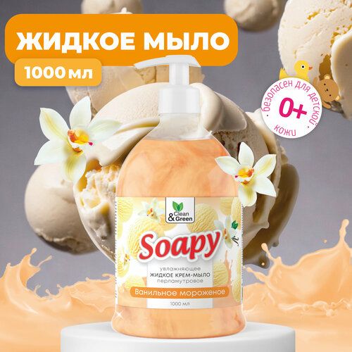 НАЙТИ ВЫГОДНЕЕ - Крем-мыло жидкое с перламутром Soapy ванильное мороженое 1000 мл. Clean&Green CG8308