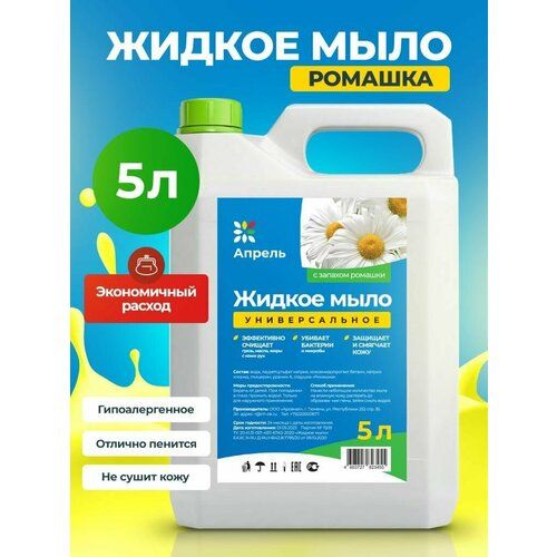 Гигиена рук и тела очень важная процедура. Жидкое мыло для рук Апрель 5 литров (5000 мл) с увлажняющим и питающим эффектом. Натуральные компоненты мыла 5л. не только уничтожают микробы, бактерии и вирусы, но защищают кожу вашего тела и рук. Жидкое средство обладает приятным запахом цитрусов, что позволяет наслаждаться каждым умыванием. Оно не вызывает раздражения, а наоборот снимает его, питая и увлажняя кожу. Жидкое мыло имеет матовую мягкую консистенцию. При использовании мыла образуется нежная густая пена, которая бережно очищает ваши руки. Также наличие хорошей пены позволяет назвать средство экономным за счет небольшого расхода. Жидкое мыло сертифицировано и проверено множеством тестов, оно полностью безопасно и подходит для всей семьи. Дети особенно любят это мыло за его аромат. Его можно использовать на даче, в офисе, в общественном туалете и других местах. Подходит для ежедневного мытья рук.