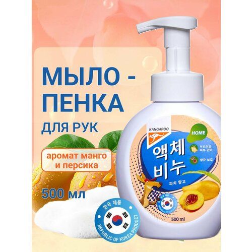 НАЙТИ ВЫГОДНЕЕ - Корейское жидкое мыло пенка с ароматом персика и манго, 500 мл. Kangaroo Home