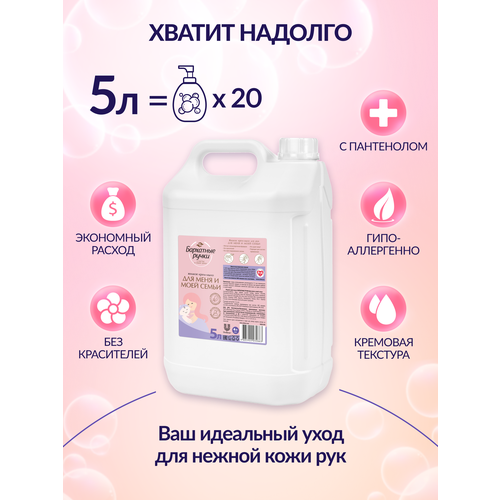 Жидкое крем-мыло Бархатные ручки Для меня и моей семьи, 5 литров