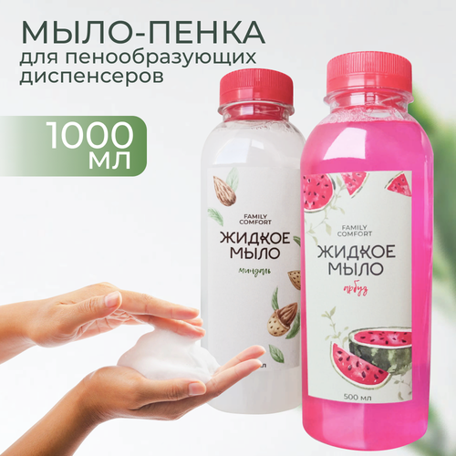 НАЙТИ ВЫГОДНЕЕ - Жидкое мыло для пенных дозаторов Миндаль Арбуз 2 шт по 500 мл