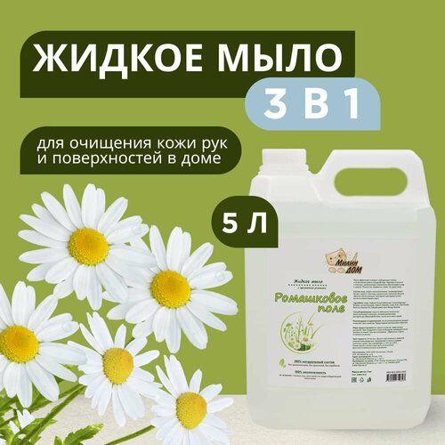 НАЙТИ ВЫГОДНЕЕ - Натуральное жидкое мыло 3в1 милин ДОМ Ромашковое поле универсальное, 5 литров