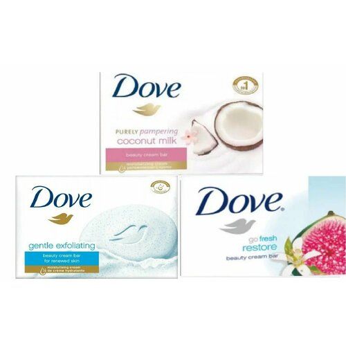 НАЙТИ ВЫГОДНЕЕ - Набор крем-мыла Dove Кокос, Инжир, Отшелушивающее 3 шт по 135 г