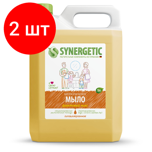 Внимание[Мыло жидкое Synergetic "Фруктовый микс", канистра, 5л] X 2 шт.