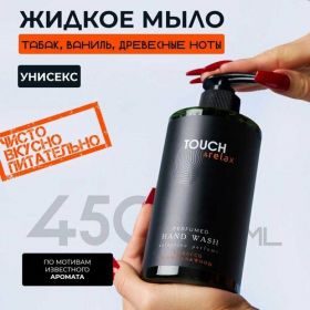 Парфюмированный гель для мытья рук TOUCH&relax с нотами табака, ванили и древесных нот, станет прекрасным дополнением вашего ежедневного ритуала ухода за руками. Он не только очистит вашу кожу, но и наполнит ее приятным ароматом, который будет радовать вас весь день. Аромат начнется раскрываться с богатого и насыщенного запаха табака, который придаст вашей коже рук теплоту и загадочность. Постепенно ванильные ноты раскроются, добавляя сладость и уют, создавая приятное ощущение комфорта. Древесные ноты придают аромату стойкость и мужественность, обрамляя его теплым и соблазнительным шлейфом. В итоге, на вашей коже останется утонченный, элегантный и чувственный аромат, который будет радовать вас и окружающих весь день. Богатый состав обеспечит вашей коже непревзойденный уход: • Молочная кислота отшелушивает кожу;• Д-пантенол увлажняет и успокаивает, способствует заживлению и улучшению состояния кожи;• Витамин Е предотвращает преждевременное старение;• Натуральные масла макадамии, виноградной косточки, зародышей пшеницы питают, дарят гладкость и эластичность коже;• Экстракты алоэ вера, гамамелиса и лемонграсса предотвращают обезвоживание кожи, обеспечивают ей свежий и сияющий вид; • Инулин поддерживает естественный баланс влаги в коже. Кроме того, гель для мытья рук TOUCH&relax обладает нежной текстурой, которая легко вспенивается и мягко очищает кожу, не пересушивая ее. Его удобно наносить на кожу благодаря удобному дозатору, который помогает экономно расходовать продукт. А флакон размером 450 мл обеспечивает длительное использование. ТАЧ релакс подходит для всех типов кожи, включая чувствительную, благодаря своему бережному составу. После использования жидкого гель мыла ваша кожа будет не только чистой, но и увлажненной, сияющей с приятным ароматом. Гель станет отличным подарком на Новый Год.
