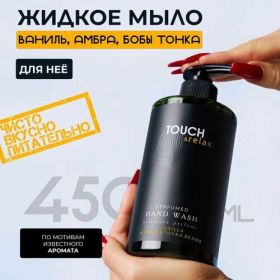 Парфюмированный гель для мытья рук TOUCH&relax с нотами ванили, амбры и бобов тонка, станет прекрасным дополнением вашего ежедневного ритуала ухода за руками. Он не только очистит вашу кожу, но и наполнит ее приятным ароматом, который будет радовать вас весь день. На коже аромат геля для мытья рук раскроется мягко и нежно. Начальные ноты ванили создадут сладкий и уютный аккорд, который будет ощущаться сразу после применения. Постепенно амбровые оттенки добавят теплоты и загадочности, обволакивая вашу кожу нежным древесным ароматом. Наконец, нотки бобов тонка добавят сладковатую пикантность, создавая теплую и уютную атмосферу, которая будет ощущаться на вашей коже в течение нескольких часов после использования жидкого гель мыла для рук. Богатый состав обеспечит вашей коже непревзойденный уход: • Молочная кислота отшелушивает кожу;• Д-пантенол увлажняет и успокаивает, способствует заживлению и улучшению состояния кожи;• Витамин Е предотвращает преждевременное старение;• Натуральные масла макадамии, виноградной косточки, зародышей пшеницы питают, дарят гладкость и эластичность коже;• Экстракты алоэ вера, гамамелиса и лемонграсса предотвращают обезвоживание кожи, обеспечивают ей свежий и сияющий вид; • Инулин поддерживает естественный баланс влаги в коже. Кроме того, гель для мытья рук TOUCH&relax обладает нежной текстурой, которая легко вспенивается и мягко очищает кожу, не пересушивая ее. Его удобно наносить на кожу благодаря удобному дозатору, который помогает экономно расходовать продукт. А флакон размером 450 мл обеспечивает длительное использование. ТАЧ релакс подходит для всех типов кожи, включая чувствительную, благодаря своему бережному составу. После использования геля ваша кожа будет не только чистой, но и увлажненной, сияющей с приятным ароматом. Гель станет отличным подарком на Новый Год.
