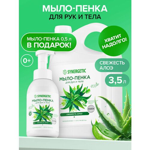 НАЙТИ ВЫГОДНЕЕ - Набор SYNERGETIC Мыло-пенка для рук и тела Свежесть алоэ 3,5 л + флакон-подарок 0,5 л с пенообразующей насадкой