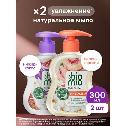 НАЙТИ ВЫГОДНЕЕ - BioMio. Natural Liquid Soap. Натуральное жидкое мыло с маслом персика, с экстрактом инжира и маслом кокоса, 300 мл, 2 шт