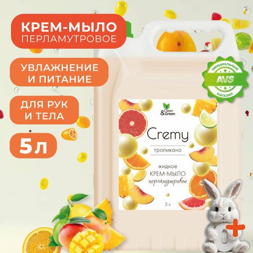 НАЙТИ ВЫГОДНЕЕ - Жидкое мыло для рук 5 л Clean&Green Cremy, Тропикано, увлажняющее с перламутром