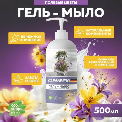 НАЙТИ ВЫГОДНЕЕ - Жидкое мыло для рук CLEANBERG Полевые цветы гипоаллергенное увлажняющее 500 мл