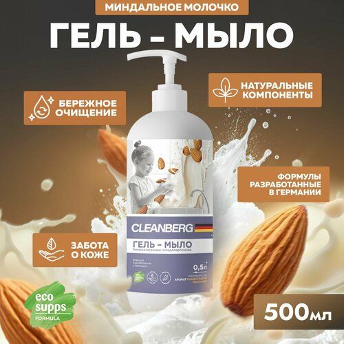 НАЙТИ ВЫГОДНЕЕ - Жидкое мыло для рук CLEANBERG Миндальное молочко гипоаллергенное увлажняющее 500 мл