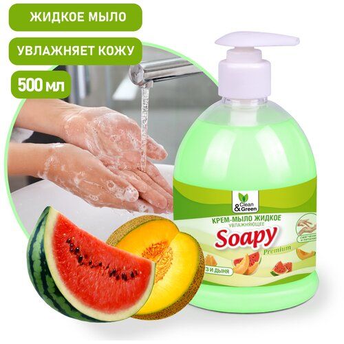 НАЙТИ ВЫГОДНЕЕ - Крем-мыло жидкое Clean&Green Soapy Clean&Green (арбуз и дыня, увлажняющее с дозатором), 500 мл, CG8112
