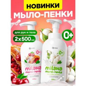 НАЙТИ ВЫГОДНЕЕ - Набор мыло-пенка Grass Milana вишневый штрудель 500 мл, + хлопковое молочко 500 мл.
