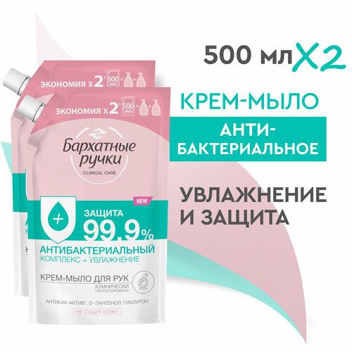 НАЙТИ ВЫГОДНЕЕ - Крем-мыло Бархатные ручки Увлажнение и защита, антибактериальное, 500 мл (2 шт)