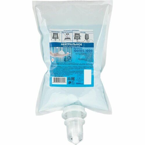 НАЙТИ ВЫГОДНЕЕ - Картридж с жидким мылом KEMAN нейтрал пенное синее S4 1000мл 100105-1000