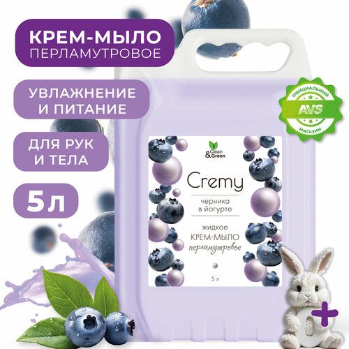 НАЙТИ ВЫГОДНЕЕ - Жидкое мыло для рук 5 л Clean&Green Cremy, Черника в йогурте, увлажняющее с перламутром