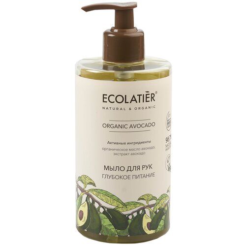 Мыло для рук Ecolatier Organic Avocado с натуральными экстрактами и маслами в составе нежно очищает, смягчает и питает кожу рук, защищает от сухости.