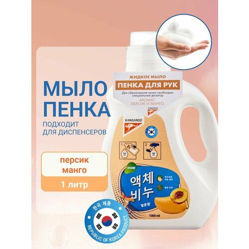 НАЙТИ ВЫГОДНЕЕ - Корейское мыло пенка Kangaroo Home персик манго 1 литр, рефил для дозаторов и диспенсеров 1000мл