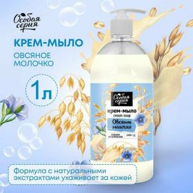 Мыло косметическое Особая Серия "ОВСЯНОЕ МОЛОЧКО" - это жидкое мыло, созданное на основе натурального овсяного молочка. Благодаря этому, оно насыщает кожу витаминами и микроэлементами, успокаивает и питает ее.