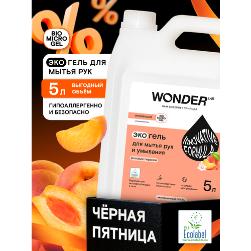 НАЙТИ ВЫГОДНЕЕ - Жидкое мыло для рук и умывания с эффектом увлажнения, WONDER LAB, гипоаллергенное, с ароматом розовых персиков, 5 л