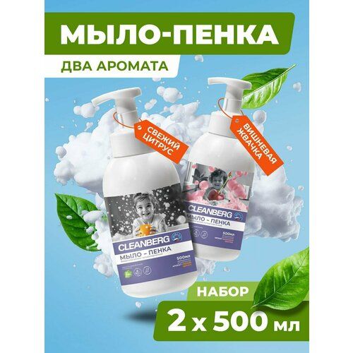 НАЙТИ ВЫГОДНЕЕ - Жидкое мыло пенка CLEANBERG набор мыло 2 шт по 500 мл свежий цитрус, вишневая жвачка