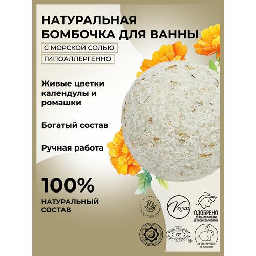 НАЙТИ ВЫГОДНЕЕ - SIBERINA Бомбочка для ванны Ромашка-календула, 80 г, 80 мл 80 мл 80 г 1 шт. белый