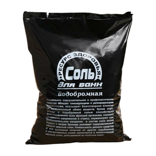 Уникальное оздоровительное и профилактическое средство обладает тонизирующими и регенерирующими свойствами, оказывает благотворное влияние на межклеточный обмен веществ. Кроме этого, ванны с йодобромной солью способствуют восстановлению всех функций организма, снимают мышечное напряжение и стресс, нормализуют сон. Дополнительное введение в состав соли калия йодида и натрия бромида усиливает оздоровительный эффект морской соли. Уникальность данного средства и его основное отличие от других зарубежных и отечественных солей заключается в экологической чистоте соли, добываемой из глубоких шахт. Способ применения: для принятия ванны рекомендуется растворить 600 - 1000 грамм соли в воде комфортной температуры. Продолжительность принятия ванны 15-20 минут. Состав: натрий хлористый, кальций ион, магний ион, сульфат ион, калия йодид, натрия бромид, нерастворимые в воде вещества, Е132, Е122.