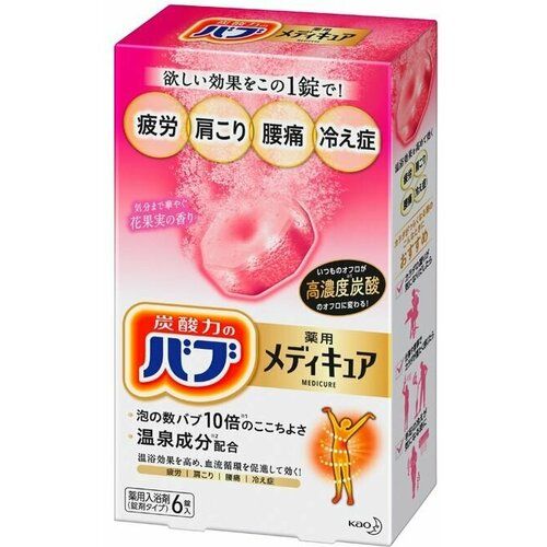 НАЙТИ ВЫГОДНЕЕ - КAO Шипучие таблетки для принятия ванны с оздоравливающим эффектом с цветочно-фруктовым ароматом, 6х70 гр