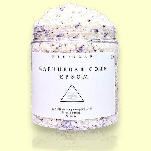 Соль для ванны "Лаванда и Сахар" от Herbidar - это уникальное сочетание магниевой соли и лавандового масла, созданное в лаборатории с использованием натуральных ингредиентов.