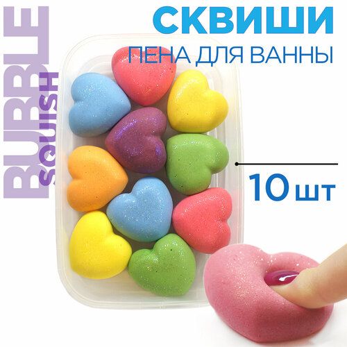 НАЙТИ ВЫГОДНЕЕ - Пена для ванны антистресс от Bubble squish / Набор сердце 10 шт / релакс Бабл сквиш