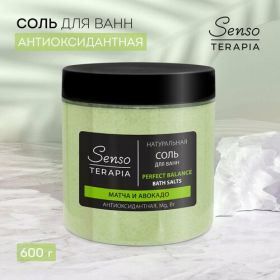 Соль для ванн Senso Terapia – это настоящий spa-уход, не выходя из дома. Натуральная соль, обогащенная природными элементами: магнием и бромом улучшает кровообращение, помогает бороться с бессонницей, снимает нервное напряжение. Масло авокадо и экстракт матчи оказывают питающие свойства, помогают вернуть коже упругость и сокращают вредное воздействие свободных радикалов. Способ применения: растворите 175 г соли (треть банки) в ванне с теплой водой (t 36°С-38°С), принимайте ванну 15-20 минут. Рассчитано на 3 применения. Класс опасности: Не опасен;