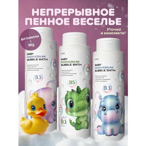 Попрощайтесь со скучным временем принятия ванны и превратите его в незабываемое общение для вас и вашего малыша. С нашим набором нежной пены для ванны ребенок получит настоящее удовольствие от купания и сможет развить свои творческие способности. Пена от ILOVE Mg максимально долго сохраняет форму и не опадает, что позволяет играть с воздушными облаками максимально долго. А особая ароматизированная формула еще больше усиливает интерес малыша к водным процедурам, будь это девочка или мальчик. Подарочный бокс включает в себя три вида пены: Дракоша – аромат Бабл Гам, Бегемотик – аромат тропических морей, Осьминожка – аромат цветочных полей, также в набор включена резиновая уточка - приятный бонус для игр в ванне.