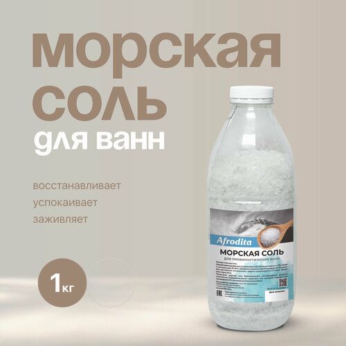 НАЙТИ ВЫГОДНЕЕ - Соль для ванн Afrodita, морская, 1кг, без аромата, гранулированная, бутылка, белый цвет)