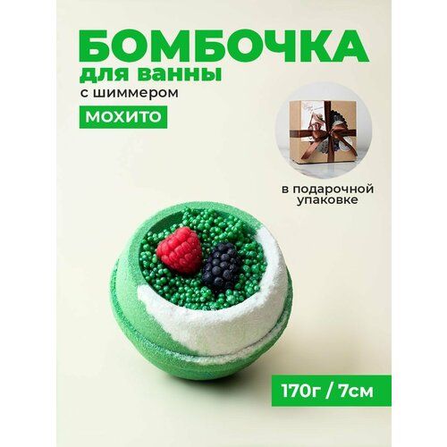 НАЙТИ ВЫГОДНЕЕ - Бомбочка для ванны Honeyberrybee Мохито, с шиммером, подарочная упаковка, 180 гр Подарок на 8 марта