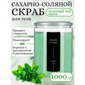 НАЙТИ ВЫГОДНЕЕ - Сахарно-соляной скраб для тела антицеллюлитный, Зеленый чай и мята, 1000 гр, Арома Фьюжн Aroma Fusion