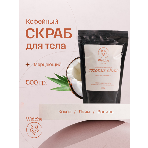 НАЙТИ ВЫГОДНЕЕ - Скраб для тела Weiche Coconut Shine антицеллюлитный парфюмированный cахарно-кокосовый мерцающий с блестками, 500 гр