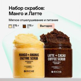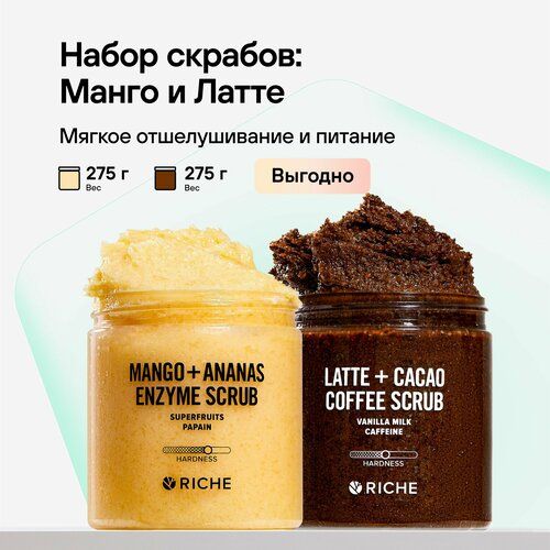 НАЙТИ ВЫГОДНЕЕ - Антицеллюлитный скраб для тела набор 2 шт RICHE: Энзимный скраб для тела, разглаживающий растяжки + Шоколадно - кремовый скраб с ореховыми маслами, уход для тела Рише