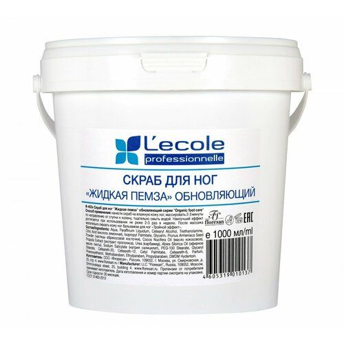 Floresan Скраб для ног Жидкая пемза обновляющий Organic foot care 1000 г - это эффективное средство для ухода за кожей ног. Созданный на основе натуральных компонентов, он обеспечивает деликатное отшелушивание и обновление кожи, делая ее мягкой и гладкой.