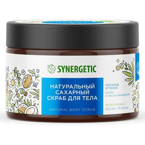 НАЙТИ ВЫГОДНЕЕ - Комплект 3 штук, Скраб для тела SYNERGETIC кокос и масло макадамии 300мл