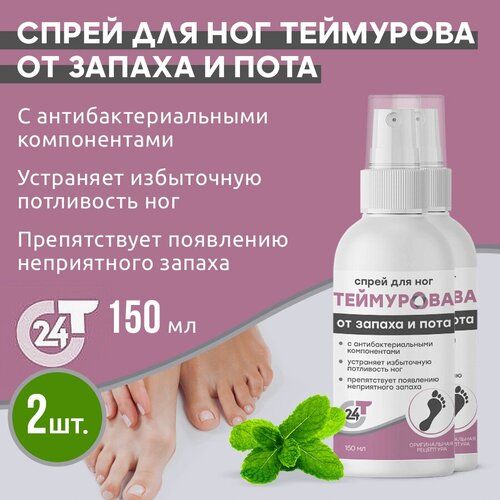 НАЙТИ ВЫГОДНЕЕ - Зеленая Дубрава Спрей для ног Теймурова от запаха и пота, 150 мл, 150 г, 2 уп.