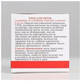 Крем изготовлен на основе масляной вытяжки из мухомора, которую активно применяют в народной медицине. Компонент обладает антисептическими, противовоспалительными и бактерицидными свойствами, хорошо ухаживает за ступнями. Регулярное применение средства способствует профилактике грибка, смягчает и питает кожу, восстанавливает эластичность и упругость, заживляет мелкие трещинки и устраняет сухость, восстанавливает структуру покровов.