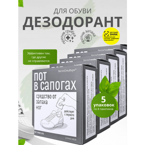 НАЙТИ ВЫГОДНЕЕ - Дезодорант Пот в сапогах от запаха пота для ног и обуви, тальк для ног ВостокСпецФарм 5 упаковок по 8 пакетиков