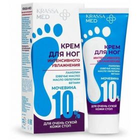 Высокоэффективное средство для сухой и очень сухой кожи ног. Формула содержит 10% мочевины, ланолин (овечье масло), масла облепихи и виноградной косточки. Крем интенсивно смягчает, питает и оказывает длительное увлажняющее действие, заметно уменьшает сухость и шероховатость.