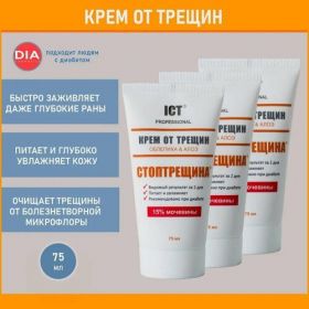 Крем от трещин с мочевиной Стоптрещина предназначен для ухода за очень сухой, растрескавшейся кожей пяток, стоп, пальцев рук и ног, ладоней, локтевых сгибов и коленей.