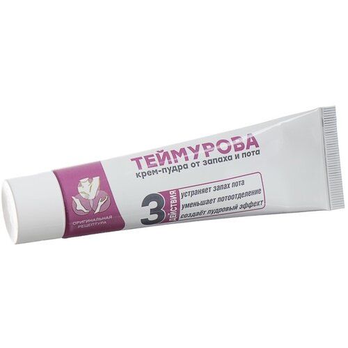 Артикул: 0674-584. Материал: См. на упаковке, Вес: 66 гр, Вид: Крем, Размер упаковки: 4 x 3 x 15 см, Температурное ограничение: Нет, Вес, г/Объём, мл: 50. Крем-пудра от запаха и пота "Теймурова" это инновационное средство, разработанное специально для борьбы с избыточной потливостью и неприятным запахом. Уникальная формула продукта основана на оригинальной рецептуре Теймурова, которая обеспечивает максимальную защиту от запаха и пота в течение дня. Крем-пудра имеет приятную текстуру и легко распределяется по коже, образуя тонкую защитную плёнку. Она мгновенно впитывает излишки влаги и создаёт ощущение свежести и комфорта. Благодаря активным ингредиентам, таким как борная кислота, салициловая кислота, оксид цинка и ментол, крем-пудра эффективно подсушивает кожу, уменьшает потоотделение и устраняет неприятный запах. Регулярное использование крем-пудры "Теймурова" поможет вам забыть о проблеме запаха пота и повышенной потливости. Это идеальное решение для тех, кто ведёт активный образ жизни, занимается спортом или испытывает дискомфорт из-за чрезмерной потливости.